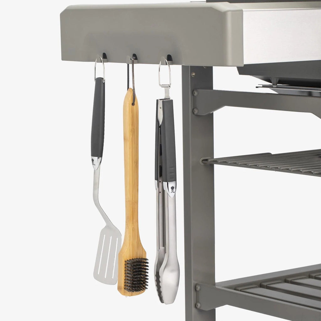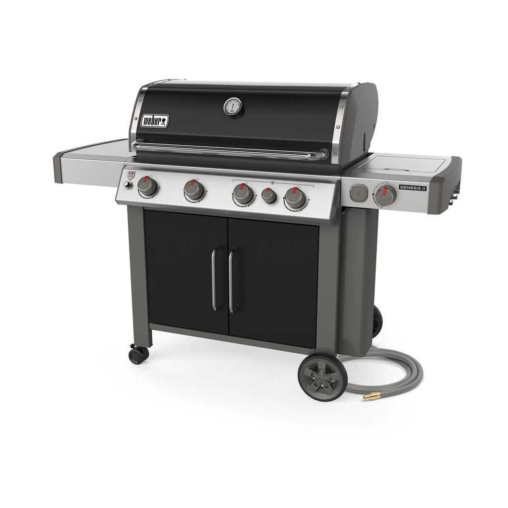 The 2019 Weber Genesis II gas grill raises the standard in backyard grilling with the GS4 high-performance grilling system, featuring continuous-spark Infinity ignition, revolutionary stainless steel high performance burners, stainless steel Flavorizer bars with flame view window and a Grease Management System. The porcelain-enameled Weber Genesis II E-435 features four stainless steel high-performance burners that produce 48,000 BTUs of power, a 12,000 BTU side shelf mounted side burner and a 9,000 BTU sear station burner. The Genesis II E series gas grills come fully equipped with porcelain-enameled cast iron cooking grates, stainless steel Flavorizer bars and stainless steel heat deflectors to effectively hold and distribute heat evenly over the 646 square-inches of cooking grates. The Tuck-Away warming rack provides an additional 198 square-inches for a generous 844 square-inches of total cooking area. The Genesis II grills come equipped with a Grease Management System that makes clean-up as easy as possible. The black color finish porcelain-enameled hood has a center-mounted thermometer to monitor cooking temperatures and has painted cast-aluminum end caps. This Genesis II E series natural gas grill is iGrill 3 ready and includes a 10-foot flexible natural gas hose. The welded tube frame, closed cart design with painted steel doors includes two shelves below the control panel and two side shelves, providing much needed prep space and two heavy-duty locking casters and two large wheels. Six convenient built-in tool hooks keep your BBQ tools nearby.